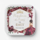 Burgundy Floral Presentación de 3 años Paper Plates — durable, print-to-order plates drenched in rich burgundy watercolor roses, soft eucalyptus, and fluttering butterflies, ready to be personalized with her name and celebration date, designed by CaMiDesigns. For orders, shipping, product information, or further assistance, don't hesitate to contact Zazzle Customer Care directly.