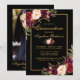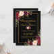 Burgundy Floral Quinceanera Black Gold Photo Back Invitation