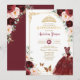 Burgundy Floral Quinceañera Princess Mis Quince Invitation