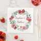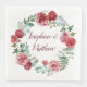 Burgundy Floral Roses Foliage Wreath Wedding Napkin