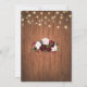Perfect for country boho weddings, these rustic floral save the date cards feature a bouquet of burgundy and blush flowers on top of a mason jar with the important text inside. String lights decorate the top of the design, with a rustic wood background.