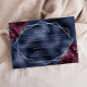 This elegant modern wedding details enclosure card features a silver geometric frame decorated with burgundy flowers and silver faux glitter on a navy blue faux foil background. The customisable text combines silver grey whimsical handwriting and copperplate fonts. The navy blue foil image is repeated on the back.