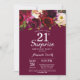 Burgundy Floral Surprise 21st Birthday Party Invitation