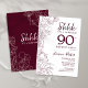 Burgundy maroon and white surprise 90th birthday invitation. Elegant feminine marsala wine design features botanical accents and typography script font. Elegant floral invite card perfect for a stylish female surprise bday celebration. Printed Zazzle invitations or instant download digital printable template.