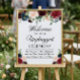 Burgundy Blush Blue Floral Unplugged Wedding Ceremony Sign Poster.