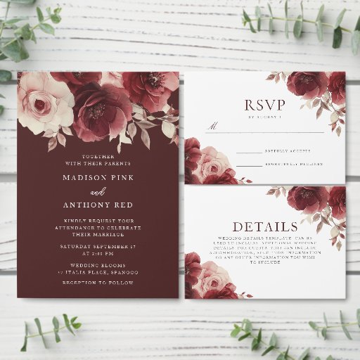 Vintage Burgundy Roses Elegant Wedding SetDesigned by Love in Print Studio