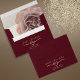 Add a touch of elegance to your wedding suite with this modern 5x7 burgundy envelope, designed to complement your invitations with style and charm. Featuring a romantic watercolor floral design with soft pink roses, a gold rope heart, and a personalised return address, this envelope blends chic sophistication with timeless beauty—perfect for fall, floral, or romantic wedding themes.