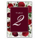 Burgundy Floral Watercolor Wedding Itinerary Table Number
