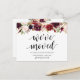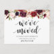 This modern, burgundy floral, new home, moving announcement, change of address postcards (with card title, we have moved). It s the perfect way to announce to your friends and family, that you have moved.