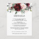 Burgundy Floral Wedding Guest Details Information Enclosure Card