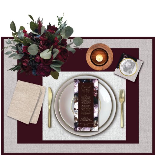 Burgundy Floral Wedding Table Meal Placement Card