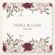 Burgundy floral wedding paper coasters for fall and autumn weddings, featuring a rich, moody, and elevated aesthetic inspired by old money elegance and vintage botanical design, perfect for the refined, detail-focused couple. Ideal for bar setups and reception tables. Style with velvet linens, gold accents, and deep wine florals.