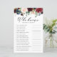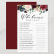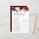 Who knows the mum best? Add this fun and playful customisable baby shower game card to your event. It features watercolor floral garland of burgundy, red, blush and navy flowers with eucalyptus leaves accents. Personalise this burgundy floral baby shower game by adding your own questions. This watercolor baby shower game is perfect for fall baby showers.