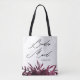 Pretty burgundy floral with elegant bridesmaid calligraphy and name totebag.