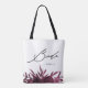 Burgundy Floral with Stylish Bride Script Tote Bag