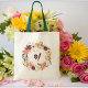 Burgundy Floral Wreath Bridesmaid Initial Tote Bag