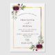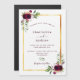 On front: A white background with a faux gold frame. Decorated with dark burgundy flowers, roses, boho style feathers and greenery. Personalise and add Your names and wedding details.