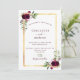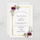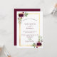 On front: A white background with a faux gold frame. Decorated with dark burgundy flowers, roses, boho style feathers and greenery. Personalise and add Your names and wedding details.