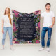 Memorial blanket in a very dark blue with a psalm written in blush pink inside a frame of flowers, greenery, and berries in burgundy, dark pink, blush pink, and blue. Add your loved one's name in a pretty script.