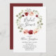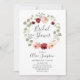 Our bohemian bridal shower invitation features a watercolor floral wreath with burgundy and blush flowers with greenery.