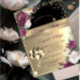 Elegant gold diamonds frame, balloons, wine bottle, burgundy flowers on gold background.