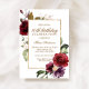 Burgundy Flowers Gold Border 80th Birthday Party Invitation