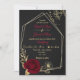 elegant luxury burgundy and gold flowers with some gold leaves on geometric frame black wedding invitation