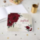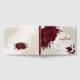 Unique wedding guest book featuring romantic burgundy flowers and green leaves.