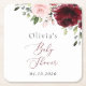 Burgundy Flowers, Pink Flowers, Boho, Baby Shower Square Paper Coaster