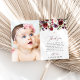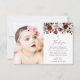Burgundy Flowers, Pink Flowers, Floral Baptism Thank You Card
