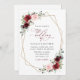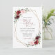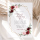 Invite friends and family in style and set the tone for your special day with this charming wedding invitation. Design features burgundy and blush pink watercolor flowers, greenery and gold frame on white background.