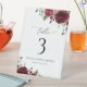 Burgundy Flowers, Red Flowers, Boho, Table Numbers Pedestal Sign