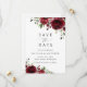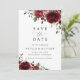 Invite friends and family in style and set the tone for your special day with this charming save the date card. Design features burgundy watercolor flowers and greenery on white background.