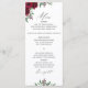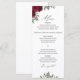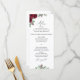 Menu for wedding celebration with burgundy & greenery floral and calligraphy names.