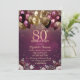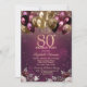 Burgundy Glitter Balloons Flowers 80th Birthday Invitation
