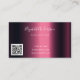 An elegant and glamourous business card on a burgundy faux metallic looking background decorated with faux glitter drips, paint dripping look on front. Elegant white hand lettered style script. Personalise and add Your name, title, contact info and your own QR code to your website address.