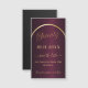 A magnetic Save the Date card for a 70th birthday party. A burgundy background, decorated with a faux gold arch. Personalise and add a date and your name. The text: Seventy and Save the Date is written with a large trendy hand lettered style script.