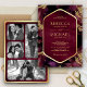 Burgundy Gold Abstract Fluid Ink Photo Wedding Invitation