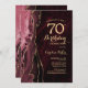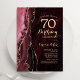 Burgundy and gold agate 70th birthday party invitation. Elegant modern design featuring dark red marsala wine watercolor agate marble geode background, faux glitter gold and typography script font. Trendy invite card perfect for a stylish women's bday celebration. Printed Zazzle invitations or instant download digital printable template.