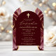 A sophisticated and elegant Confirmation invitation featuring a luxurious burgundy and gold agate design. Printed on premium acrylic, this invitation combines modern style with timeless grace. The deep burgundy tones paired with radiant gold accents create a refined and regal aesthetic, making it the perfect choice for a meaningful and memorable Confirmation celebration.