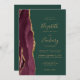 Burgundy Gold Agate Emerald Green QR Code Wedding Invitation