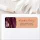 The left-hand edge of this elegant modern wedding invitation return address label features a burgundy watercolor agate border trimmed with faux gold glitter. The customisable text combines burgundy handwriting script and charcoal grey copperplate font on a peach background.