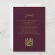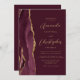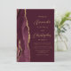 The left-hand edge of this elegant modern wedding invitation features a burgundy red watercolor agate border trimmed with faux gold glitter. The customisable text combines gold-coloured script and sans serif fonts on a burgundy background. The reverse side provides space for wedding details on a solid burgundy background, along with a QR code guests can scan to visit your website and RSVP, which saves the cost of printing and mailing separate RSVP cards.
