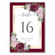 Burgundy Gold Blush Floral Wedding Table Number