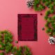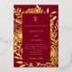 A burgundy background decorated with real gold foil botanical pattern and text. Personalize and add your monogram initials and the details.