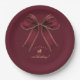 Burgundy Gold Bow Rocking Horse Luxury Birthday Paper Plate