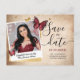Burgundy Gold Butterfly Quince Photo Save the Date Announcement Postcard