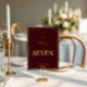 Burgundy Gold Crest Monogram Wedding Table Number