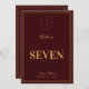 A crest monogram wedding table number featuring rich burgundy tones paired with soft gold accents for a timeless, elegant look. The refined emblem and classic layout add a polished touch to each table, making it ideal for formal, evening, or fall weddings. Designed to coordinate seamlessly with your burgundy and gold suite, this table number brings a sophisticated, upscale feel to your reception decor.