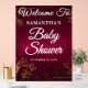 Make a glamourous autumn statement with this elegant burgundy and gold baby shower welcome sign. Featuring rich florals and shimmering metallic leaf accents, it’s perfect for sophisticated fall celebrations.